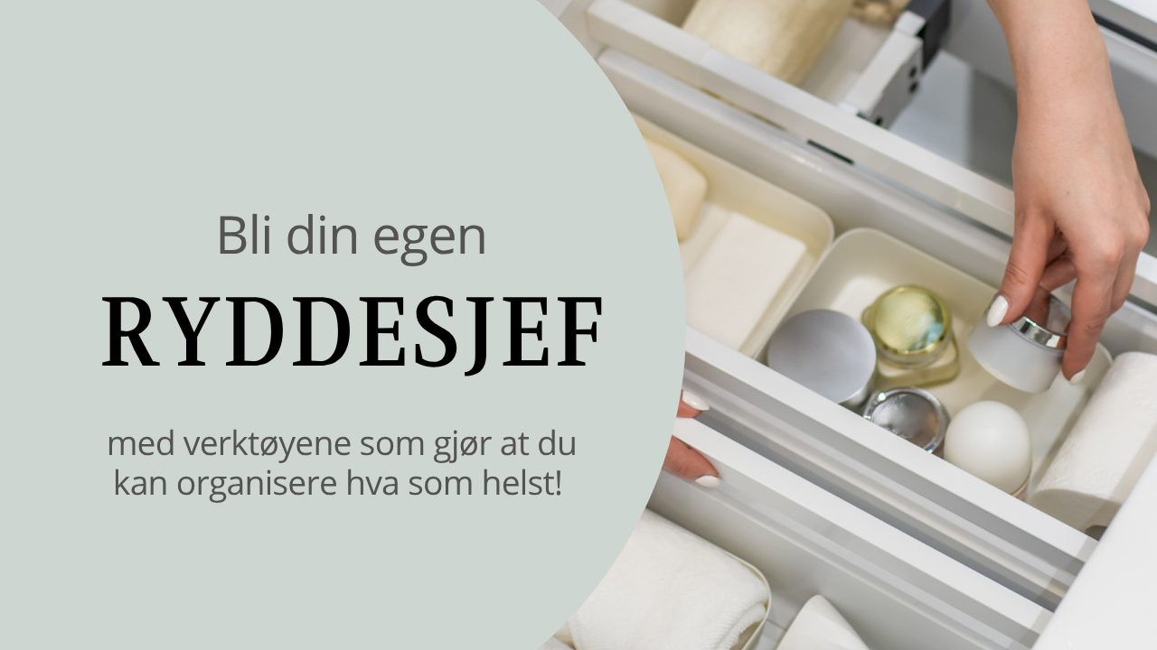 Venter det ennå rot på deg i skap, skuffer og kanskje i boden. Gjenstander du vet du skulle ha ryddet gjennom for å få oversikt, lage organisering som fungerer og vite at det du gir plass til er gjenstander du faktisk velger å beholde med hjertet eller på grunn av funksjon.